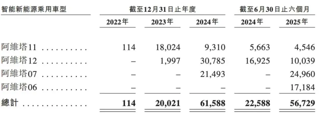 品牌旗下首款車型阿維塔11于2022年8月上市,2022年至2024年時期的銷量分裂為114輛、18024輛和9310輛,先發上風過剩但增長潛力不及;2025年上半年阿維塔11累計售出4546輛,較2024年同期的5663輛進一步減少19.7%。